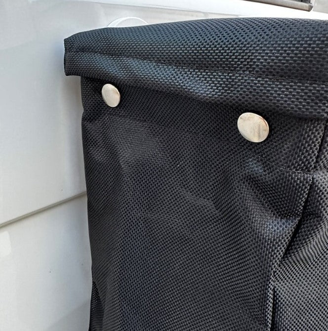 This practical container in the campperfect design is equipped with two strong magnets (approx. 66mm diameter) and can therefore be placed flexibly on all magnetic surfaces. No matter whether on the sliding door, the trunk or the outdoor kitchen. Of course, the trash can can also be placed inside the camper.