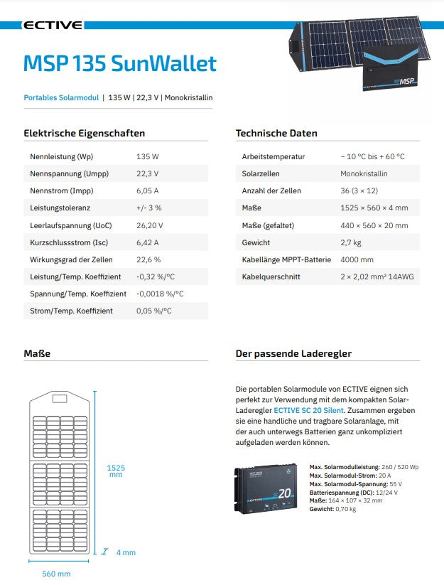 ECTIVE MSP 135 SunWallet faltbares Solarmodul 135W Solartasche
