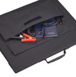 The extremely thin and lightweight solar modules in the MSP SunWallet series can be folded into a portable solar bag with an integrated handle to save space and provide optimum storage space for accessories.