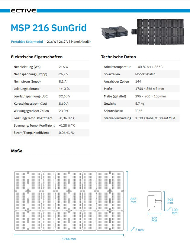 ECTIVE MSP 216 SunGrid faltbares Solarmodul 216W Solartasche