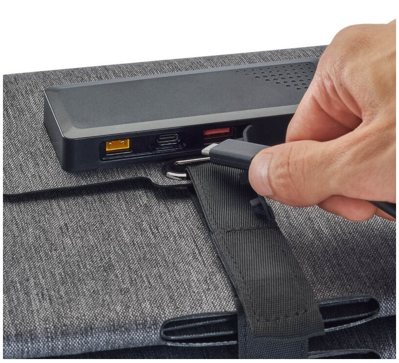 - Unfold, plug in, use solar energy