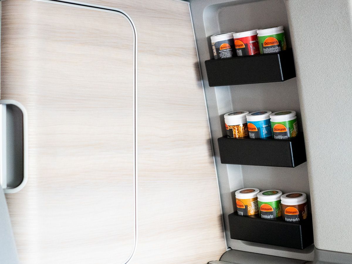 Are you a passionate camper who loves cooking in your VW bus? Then we have the perfect accessory for you! Our spice rack for the cabinet window ensures better organization and keeps your favorite spices always within reach.