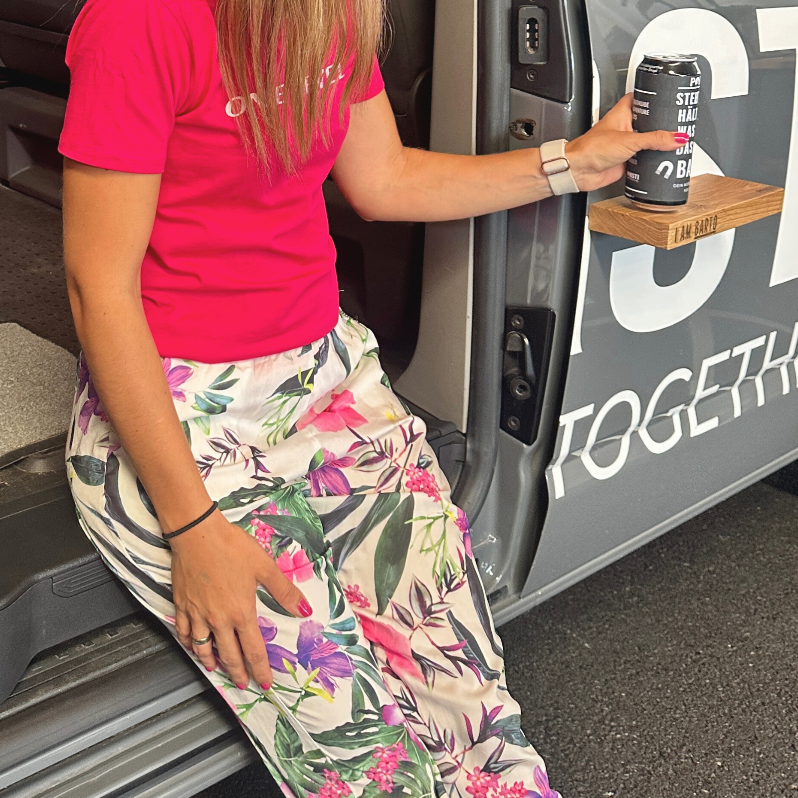 Am Campervan: Deine mobile Bar für Getränke und Snacks, immer griffbereit.