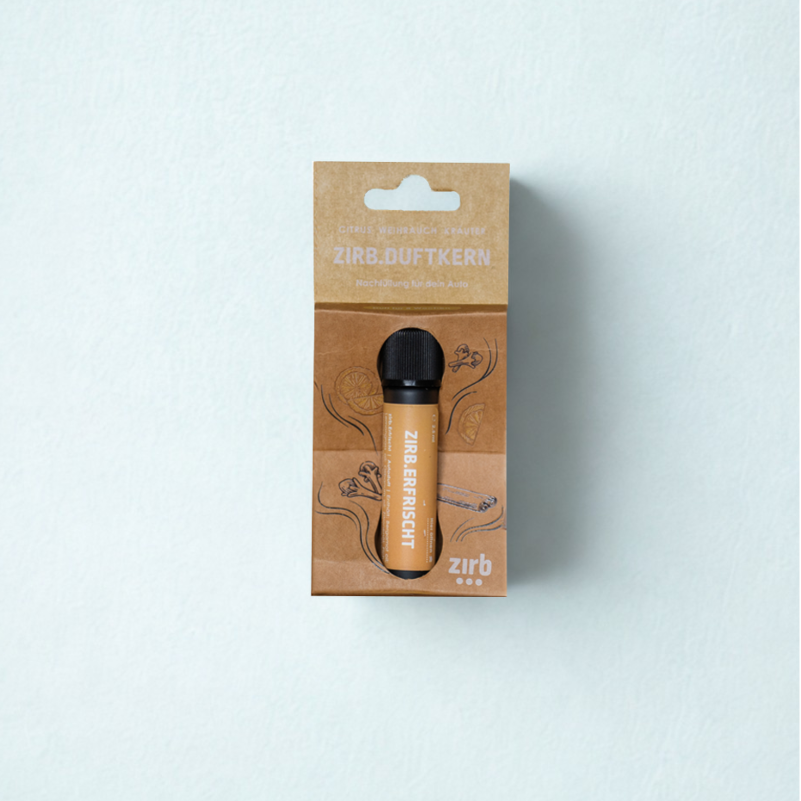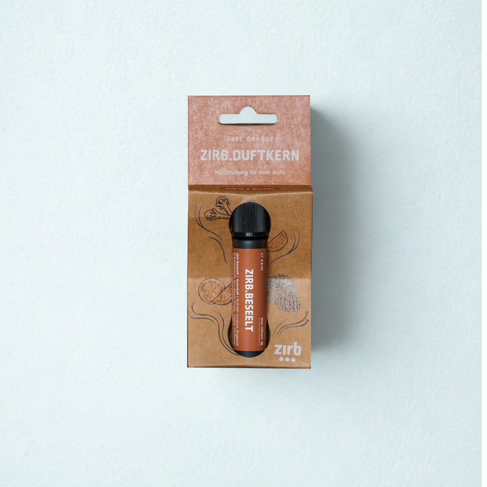 Ein warmer, erdiger Duft aus alpinem Zirbenholz, Mandarine, Patchouli und Tonkabohne – wie eine Umarmung für dein Auto.
