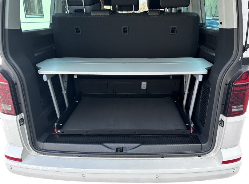 Powder-coated aluminum rear pull-out for the T5 and T6/T6.1 California Beach and Multivan with three-seater bench