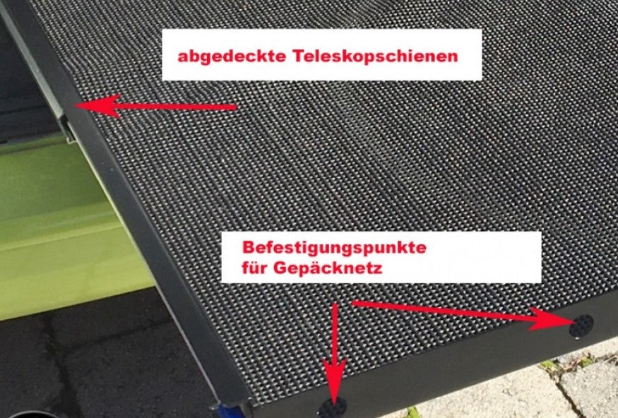 - Premium aluminum rear pull-out, internal dimensions 822 x 1036 x 50mm (LxWxH)