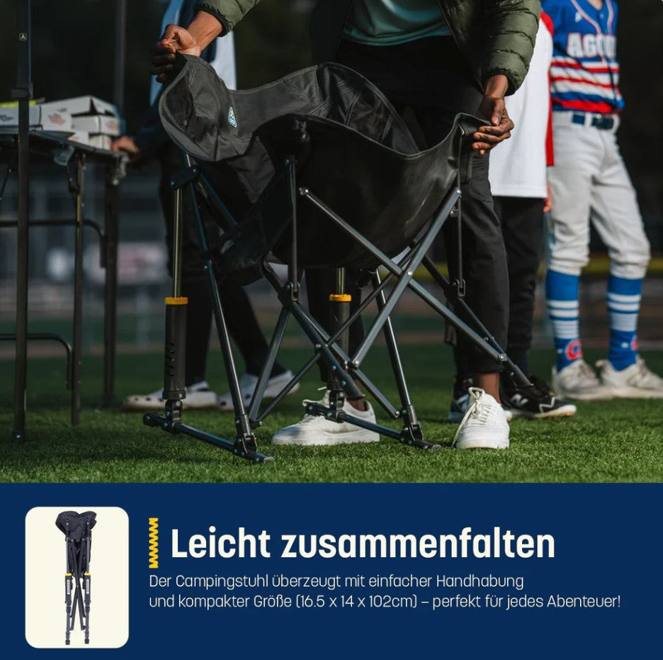 Experience next-level comfort and relaxation with our rocking camping chair. The low reclining position and ergonomic seat shell provide an unbeatable seating experience – perfect for camping, van life, or simply unwinding outdoors.