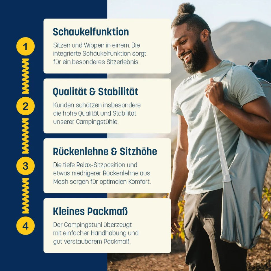 Whether you're camping, sitting by the fire, or enjoying van life – the rocking camping chair is your perfect companion for relaxing moments in nature.