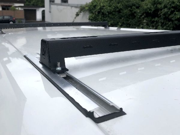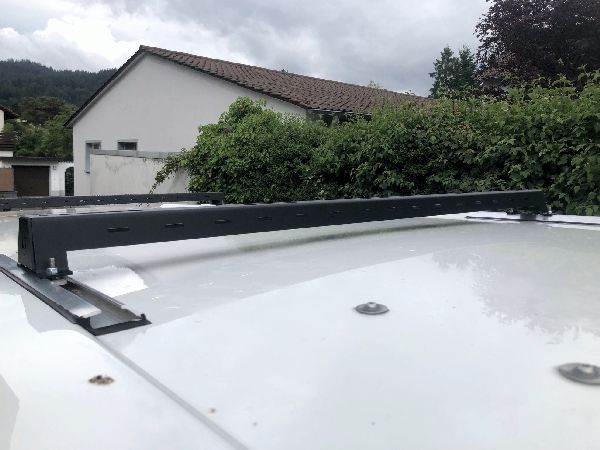 We have designed this roof rack specifically for the Reimo Easy Fit pop-up roof in combination with the Reimo Aktiv-Träger profiles. (Please check the rail spacing beforehand—from center to center, it should be between a minimum of 1090mm and a maximum of 1106mm).
