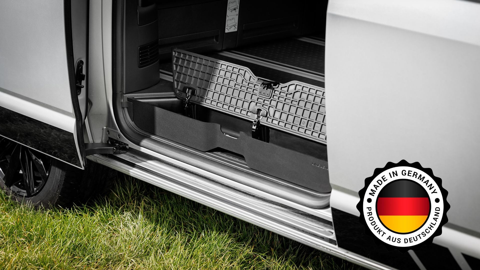 Make the most of every inch of your Multivan or transporter! OneLevel is the perfect fit storage solution for your step – a removable insert in elegant black that makes use of previously unused space.