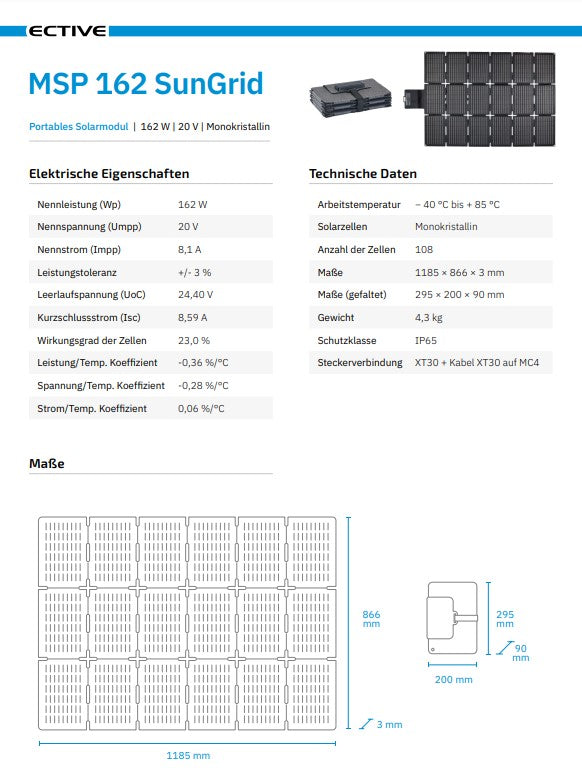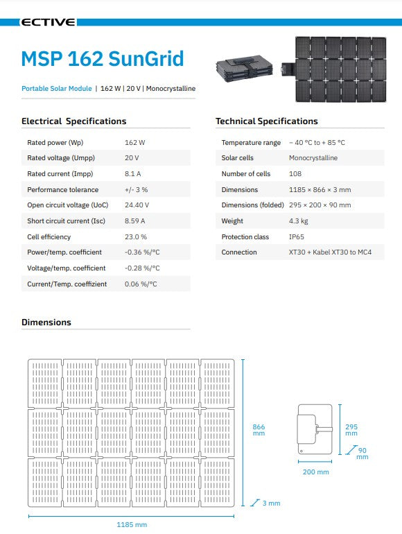 ECTIVE MSP 162 SunGrid faltbares Solarmodul 162W Solartasche