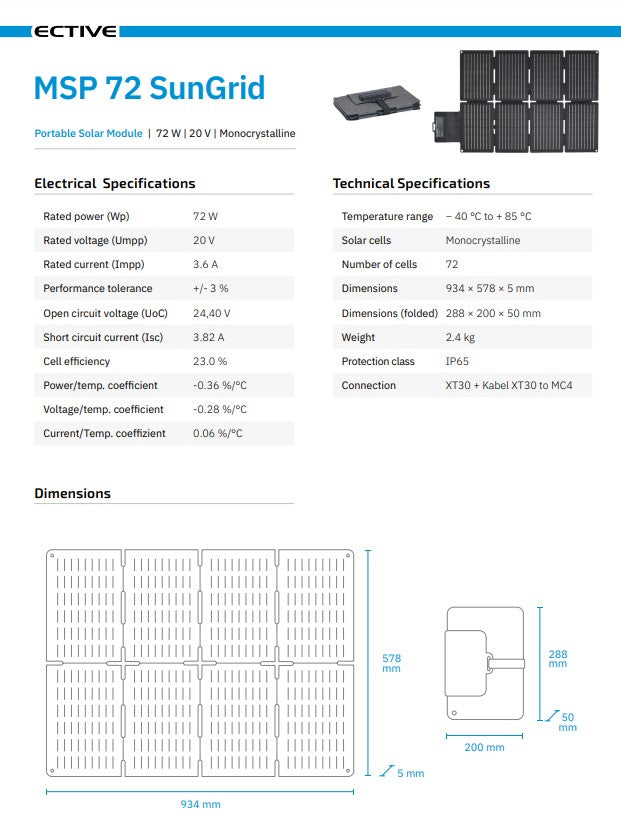 ECTIVE MSP 72 SunGrid faltbares Solarmodul 72W Solartasche